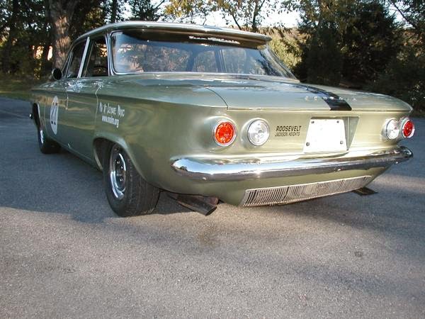 This a 1964 4-Door Former Road Race Car. "VairForce" w/ 1961 trim. Appeared in June 2007 Hemmings Muscle Machine Magazine. Raced from 1995 to 2007. Was owned by one of the orig. member of Team Early. Has 1965 Corsa 140 horsepower Motor w/ 4-1 barrel carbs. w/ 4-speed, 49,000 miles, Interior all redone new carpet, Front Seat Recovered (no rear seat)w/ rear rollcage. Nice paint, 205/60/13 tires,Comes w/ the orig Hoosiers Racing slicks. lowered 2", Runs and drives Great. Way to much to list. Car has alot of History.Interested please visit links below, this Corvair for sale